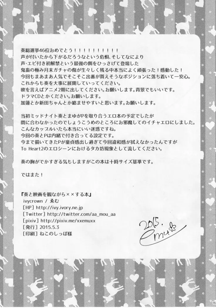 (MyBestFriends8) [ivycrown (emu)] Kanade to Eiga o Minagara XX Suru Hon (THE IDOLM@STER CINDERELLA GIRLS)