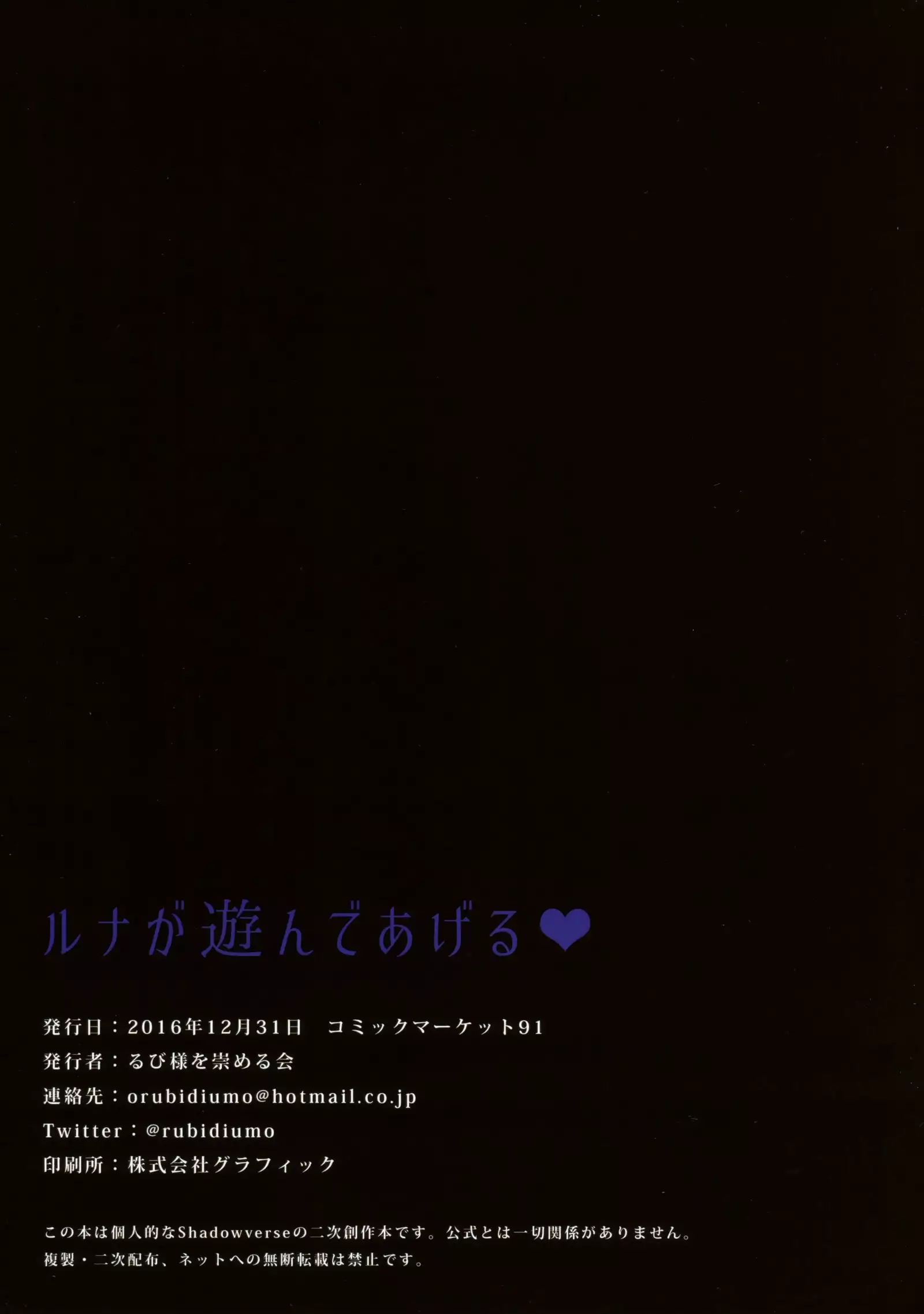 (C91) [Rubi-sama wo Agameru Kai (Rubi-sama)] Luna ga Asonde Ageru | Luna Wants to Play ♥ (Shadowverse) [English]