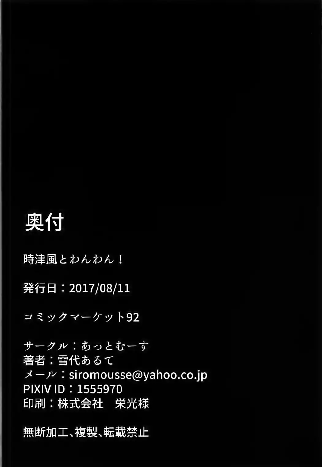 [Shishamo House (Araki Akira)] Tokitsukaze Wanwan Festival (Kantai Collection -KanColle-) [2017-09-03]