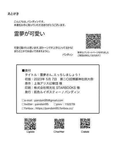 Reimu-san, Ecchi Shimashou! Hentai Porn [肌色ルイボスティー (パンダィン)] 霊夢さん、えっちしましょう! (東方Project) [中国翻訳] [DL版]